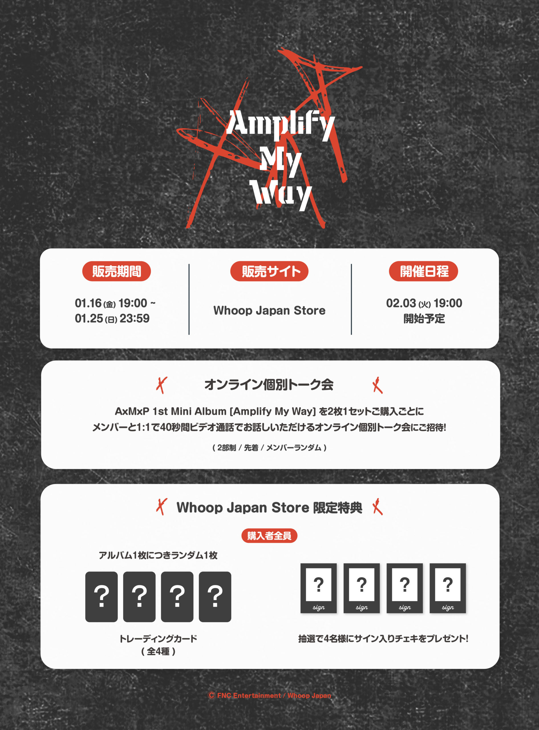 AxMxP 1st Mini Album [Amplify My Way]をWhoop Japan Storeにて販売・オンラインリリースイベントを開催することが決定いたしました!